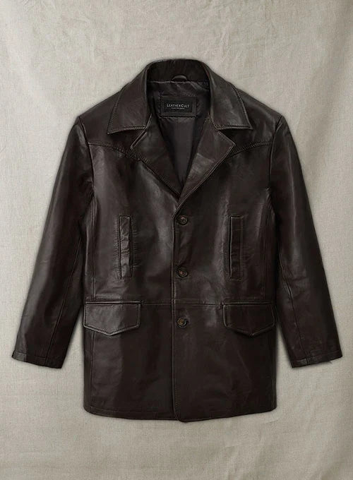 Embody Aaron Eckhart’s sophisticated look with the Love Happens leather trench coat. Crafted from high-quality leather, this coat showcases a double-breasted design, broad lapels, and a cinched waist belt, blending timeless elegance with contemporary style for both formal occasions and upscale daily wear.