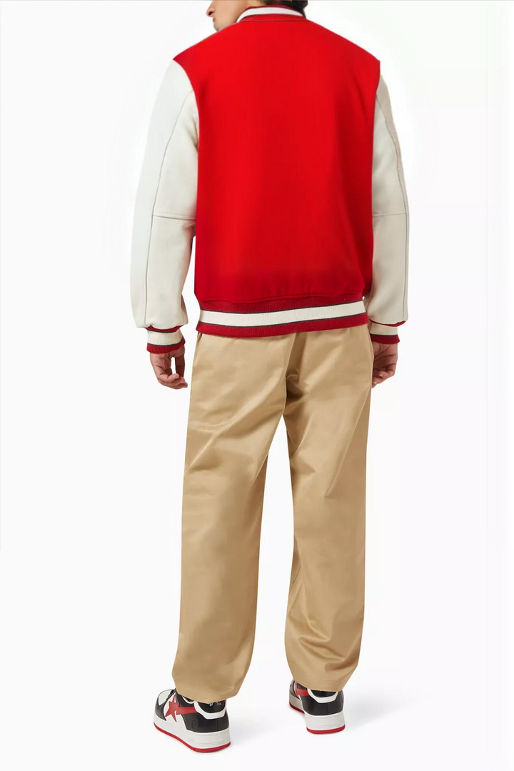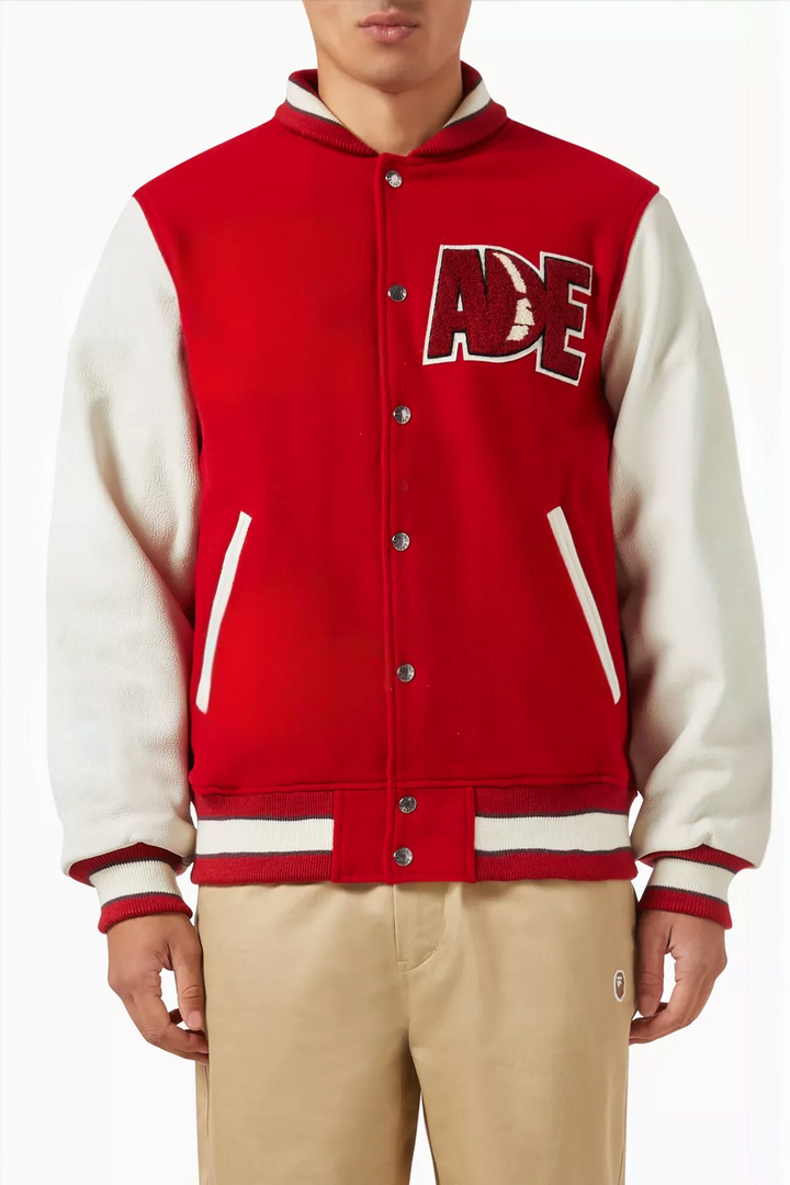 This MULTI MOTIF VARSITY JACKET in RED is a must-have for any streetwear enthusiast. Made with high-quality materials and featuring bold multi motif designs, it's both fashionable and practical. Stay warm and make a statement with this iconic varsity jacket.