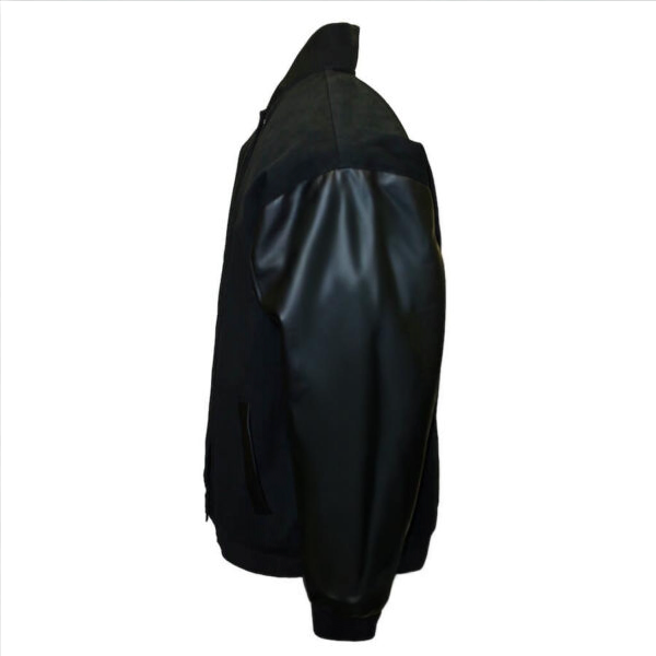 The jacket’s classic black color is enhanced by a rib-knitted collar, cuffs, and waistband, offering a snug fit and a timeless varsity look. The snap button-style closure adds a vintage touch while ensuring easy we arability. Two side waist pockets provide both practicality and style, giving you space to keep your hands warm or store small essentials.