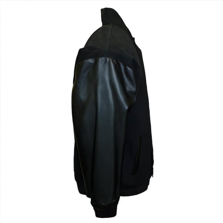Attention to detail sets this jacket apart, with high-quality leather sleeves that add a distinctive edge to its overall design. Whether you're cheering from the stands or walking around campus, this jacket is sure to make a bold statement.