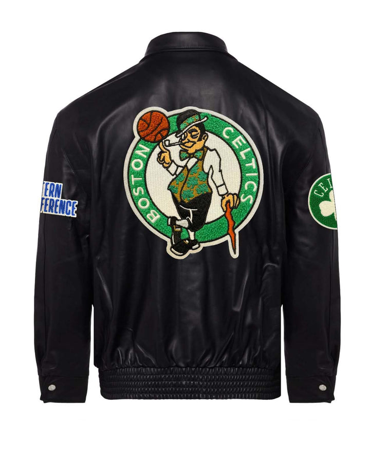 Crafted entirely from select full-grain leather, this Boston Celtics jacket represents superior quality for the dedicated NBA enthusiast. Features authentic team colorway, precision-embroidered Celtics emblems, and technical construction details including reinforced seams and strategic interior lining. The professional-grade design incorporates advanced panel construction for exceptional mobility and fit retention. Engineered to develop a distinguished patina while maintaining structural integrity through extended wear, delivering premium performance and distinguished team representation.
