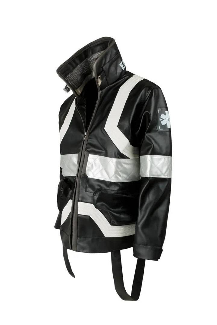With its sharp erect collar and smooth zipper closure, the David Martinez Cyberpunk Jacket exudes “ready-for-action” vibes while offering full mobility to take on every mission in futuristic style.