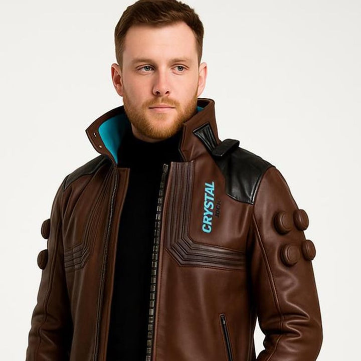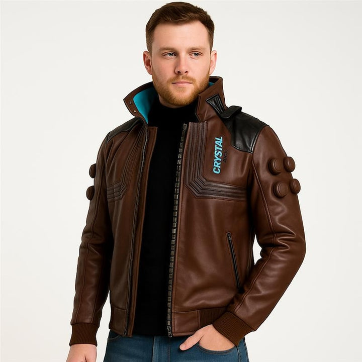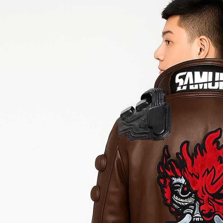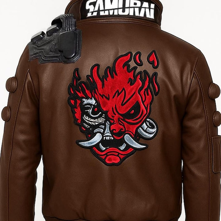 Cyberpunk V Jacket Samurai Brown Leather Bomber | Men's Gaming & Cosplay Costume | V Game Character Outerwear