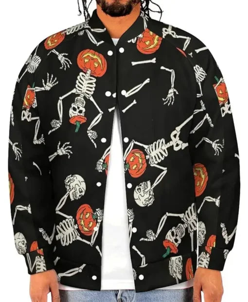 Dancing Skeleton Pumpkins Halloween Scrub Jacket – Festive Medical Uniform | USA