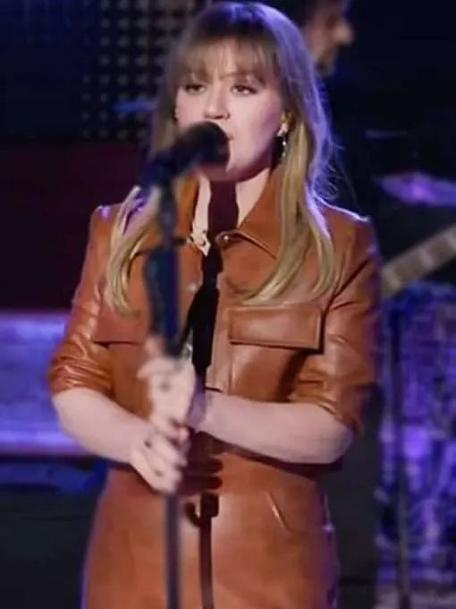 Own the stage or the street with the Kelly Clarkson Cropped Brown Leather Jacket, inspired by her standout style on The Kelly Clarkson Show. This chic leather piece combines rockstar attitude with polished elegance, making it a go-to for fans who love bold fashion with a feminine twist.