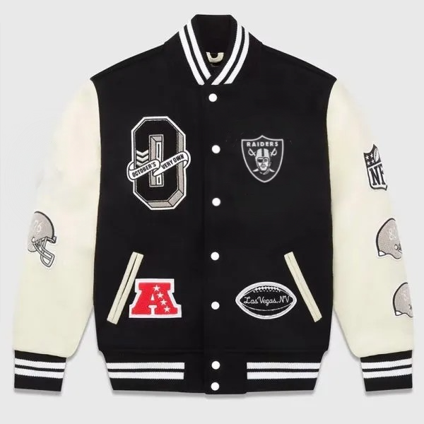 Step into Raider Nation with unmatched swagger in this Las Vegas Raiders varsity jacket. Designed for fans who live and breathe football, this iconic piece blends rugged athleticism with elite street style. Featuring a premium wool body and genuine leather sleeves, it captures the grit and glory of the Raiders franchise.