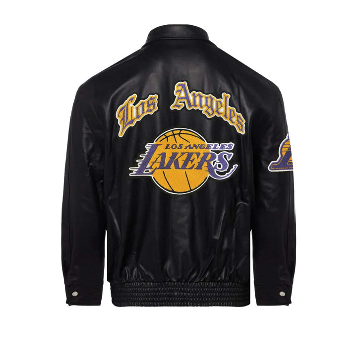 Engineered from select full-grain leather, this Los Angeles Lakers jacket exemplifies premium sportswear craftsmanship. The authentic team insignia and iconic purple and gold colorway are meticulously integrated into the design. Technical construction features include reinforced stress points, thermal regulation properties, and anatomically correct patterning for superior mobility. A distinguished garment that balances professional team representation with exceptional durability for the dedicated Lakers enthusiast.