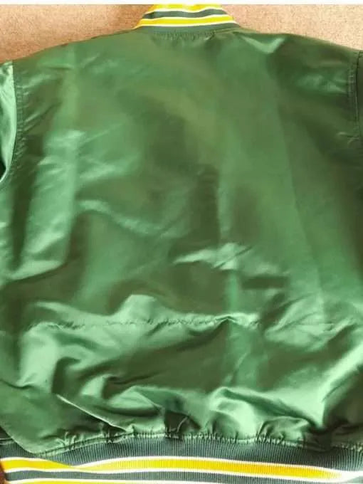 Turn heads with the Love Island UK Ronnie Vint A’s Green Bomber Jacket, inspired by the effortlessly cool look worn by footballer Ronnie Vint during Love Island 2024. This vibrant green jacket captures the perfect mix of sporty confidence and streetwear sophistication. Crafted from sleek satin fabric with a comfortable viscose lining, it’s the ideal piece for anyone who loves to stand out in style — whether on a night out or a casual day in the city.