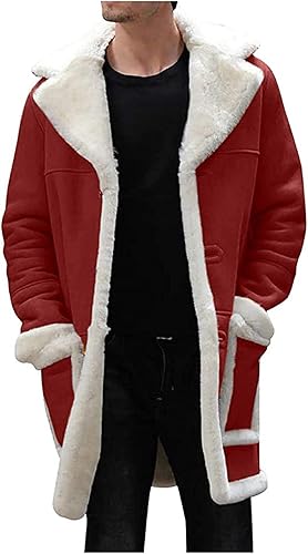Men's Red Faux Shearling Coat, Warm Winter Jacket, Festive Button-Front Long Coat, Christmas Outerwear, Cozy Suede-Look