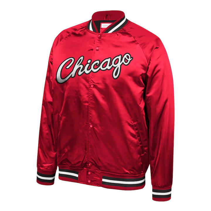 NBA Men's Chicago Bulls Red Hardwood Classics Throwback Wordmark Satin Jacket