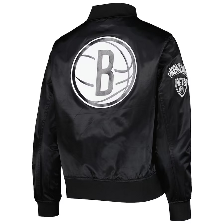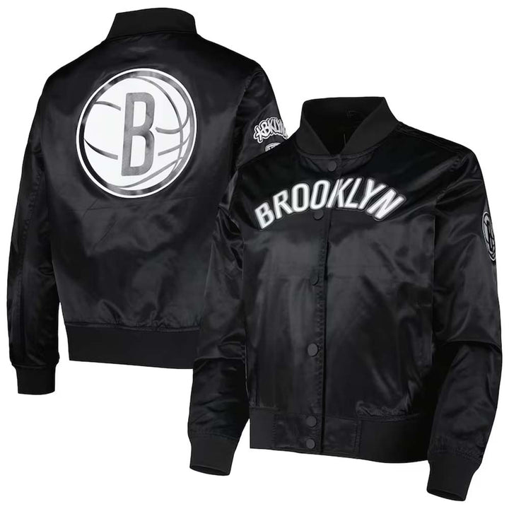 NBA Women's Black Brooklyn Nets Classics Satin Full-Snap Jacket