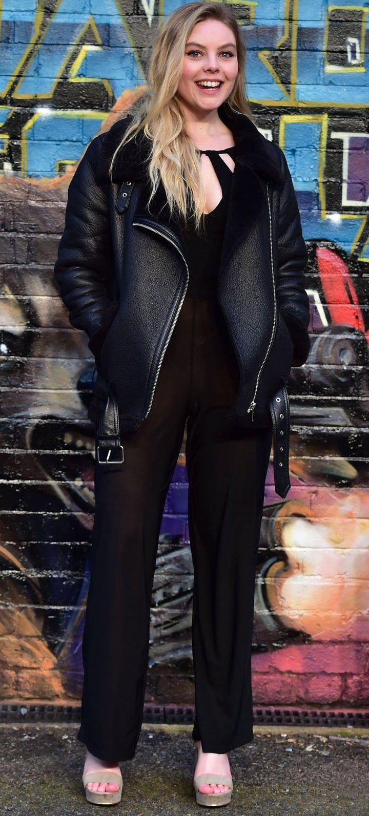 Drawing inspiration from Nell Hudson’s striking look at the Guardians of the Galaxy premiere, this faux shearling leather coat combines exceptional warmth with elegant style. Featuring a rich faux shearling interior and a polished leather outer layer, it offers a sophisticated choice for winter dressing with a touch of celebrity allure.