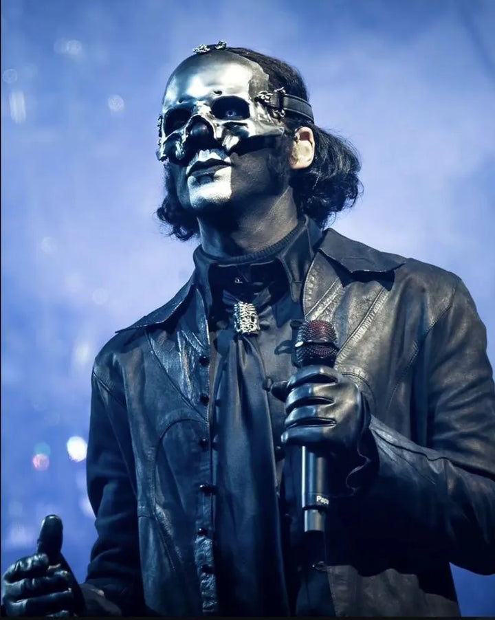 Command the stage with the Ghost Band Pope V Jacket, a gothic masterpiece inspired by Papa Emeritus V. Handcrafted from 100% genuine sheep leather, this premium coat embodies the dark elegance and bold authority of the Ghost aesthetic. With its loop button closure, regal shirt collar adorned with a gothic brooch, and full-length leather sleeves, this jacket is the ultimate choice for fans of heavy metal fashion and theatrical expression.