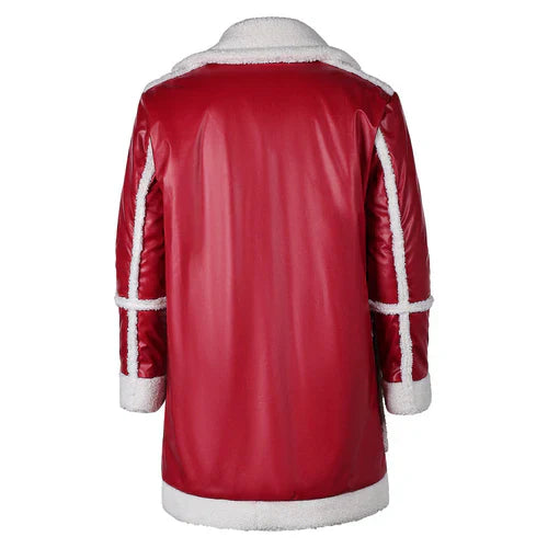 Designed for those who want to embody festive cheer with undeniable style, this jacket is more than just outerwear; it's a statement. Crafted with meticulous attention to detail, the rich red exterior offers a luxurious feel, while the soft, insulating faux shearling trim provides exceptional warmth and comfort, making it ideal for winter gatherings,