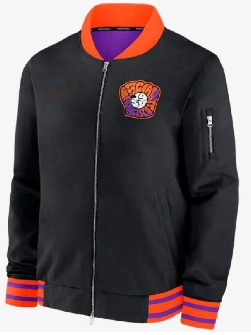 Boost your streetwear style with the San Francisco Giants Bomber Jacket, expertly blending sports legacy with modern fashion. Drawing inspiration from the legendary Major League Baseball team, this adaptable jacket adds a sharp, contemporary touch to your look, perfect for both game days and casual outings.