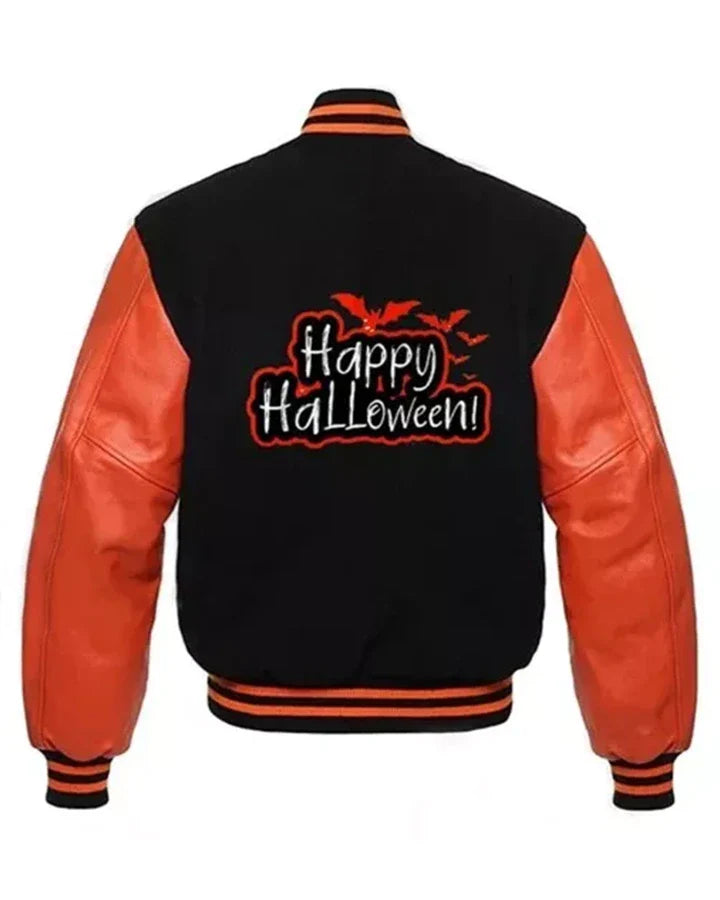 Add a touch of festive flair to your fall wardrobe with the Happy Halloween Bomber Jacket. Designed for both men and women, this stylish jacket combines a warm wool body with genuine leather sleeves, enhanced by subtle Halloween-inspired accents. Comfortable, versatile, and seasonally spirited, it’s the perfect statement piece for Halloween and beyond.