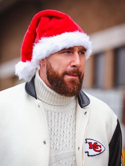 Step into superstar style with the Travis Kelce Kansas City Chiefs Varsity Bomber Jacket. Inspired by the celebrated tight end’s confident game-day look, this jacket perfectly combines sporty energy with high-end fashion. Designed for true Chiefs fans and trendsetters alike, it’s the ideal outerwear to showcase your loyalty and bold sense of style both on and off the field.