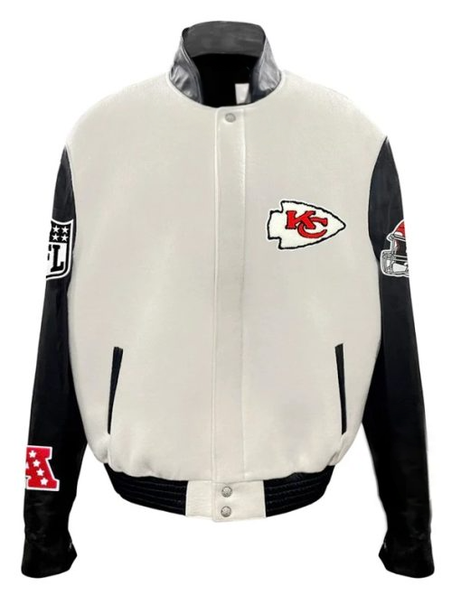 Travis Kelce Kansas City Chiefs White and Black Varsity Bomber Jacket