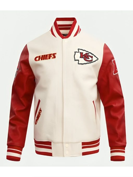 Step into the spotlight with the Tyler Hynes Kansas City Chiefs Varsity Jacket, a perfect blend of team pride and celebrity-inspired style. Modeled after Tyler Hynes’ standout look during his Kansas City stadium appearance, this jacket captures the essence of classic varsity fashion with a modern twist. The white wool body contrasted by bold red leather sleeves embodies true Chiefs energy—ideal for fans who want to showcase their passion with sophistication and flair.